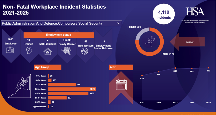 Public Administration and Defence; Compulsory Social Security Non - Fatal Workplace Injuries 2021-2025