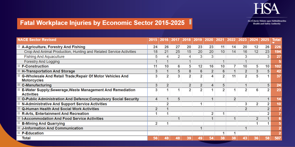 Fatal Workplace Injuries by Economic Sector 2015-2025 (NACE Revision 2)