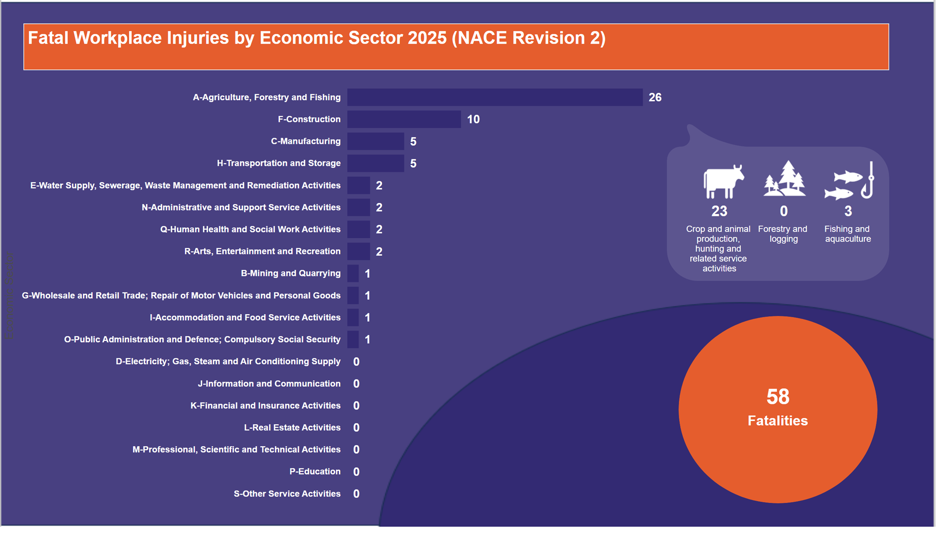 Fatal Workplace Injuries by Economic Sector 2025 (NACE Revision 2)