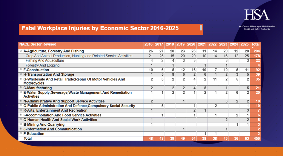 Fatal Workplace Injuries by Economic Sector 2016-2025 (NACE Revision 2)