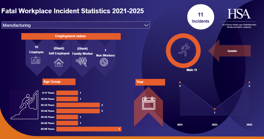 Manufacturing Fatal Workplace Injuries by Economic Sector 2021-2025