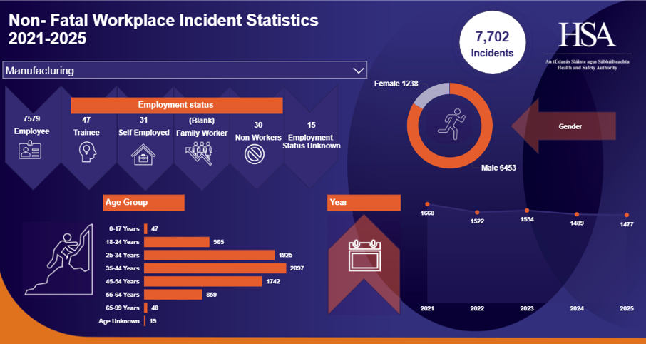 Manufacturing Non-Fatal Workplace Injuries by Economic Sector 2021-2025