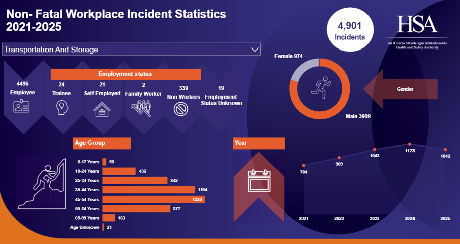 Transportation and Storage Non- Fatal Workplace Injuries 2021-2025